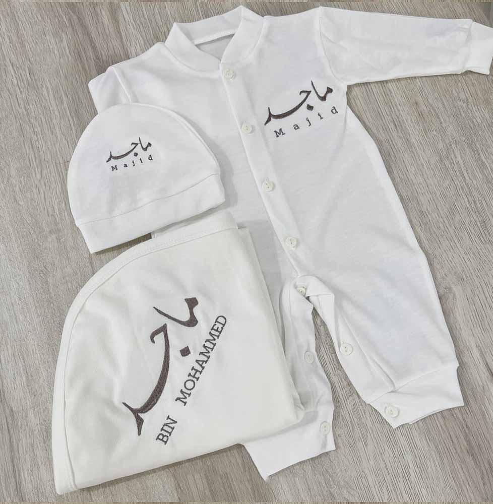 - تطريز ٣ قطع الاسم والشكل (حسب الطلب)