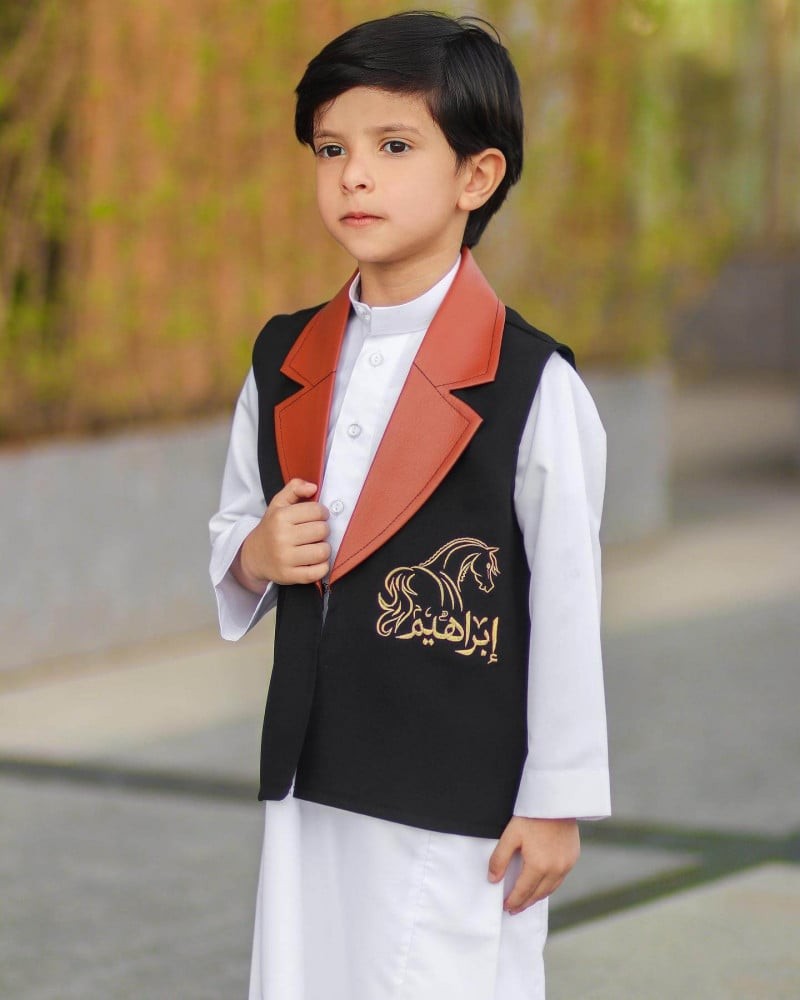 سديري اطفال بتصميم العيد شكل جديد مطرز بالاسم لثوب بشكله الانيق والمميز